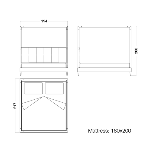 Сучасне італійське ліжко з балдахіном | Розмір матрацу: 180 x 200 см